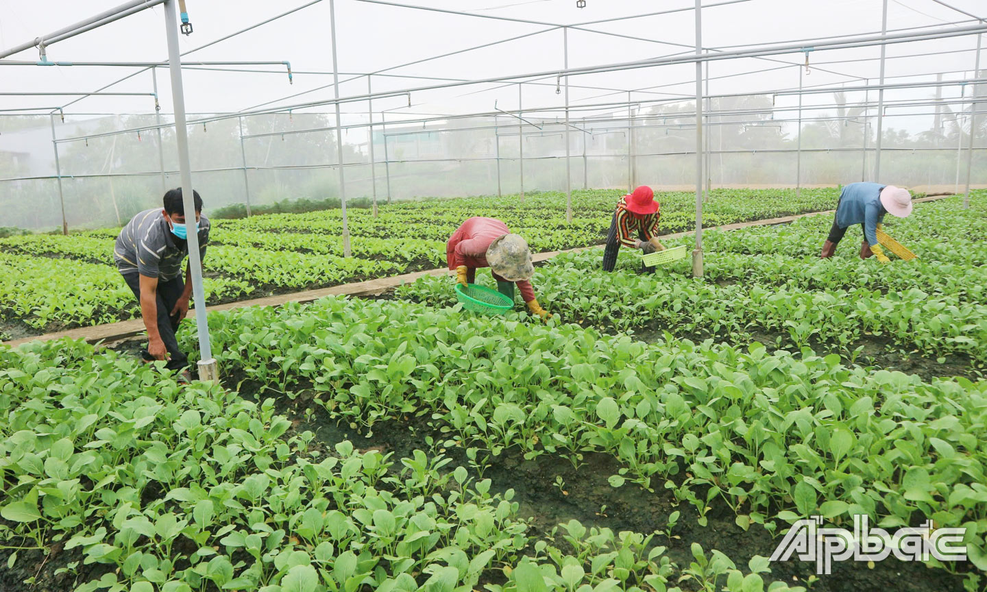 Ông Trần Văn Bương, Chủ tịch Hội đồng quản trị HTX chia sẻ: “Để đáp ứng yêu cầu ngày càng cao của thị trường, HTX quyết định đầu tư trồng rau trong nhà lưới. Điều này giúp nông dân hạn chế được các điều kiện bất lợi về thời tiết, hạn chế được dịch bệnh, côn trùng gây hại. Từ đó, nông dân giảm được hàm lượng thuốc bảo vệ thực vật, phân bón…